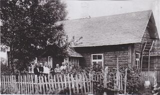 Veskimäe talupere ja külalised Karla Vahar (süles Uno), Friedrich Karm, Vilhelmine Viltmann-Karm, Elisabeth Vahar, Pauline Viltmann-Klaus, Mart Viltmann. Foto Vello Kallandilt.