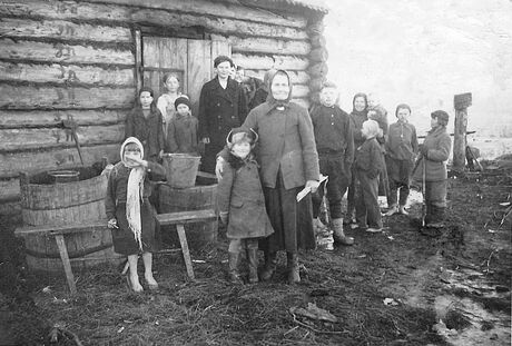 Jekaterina Põlendiku külas, Venemaal 1943. Kata paremalt neljas, Georg süles