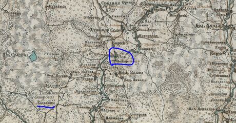Põlendiku küla asukoht Venemaa 3 verstakaardil