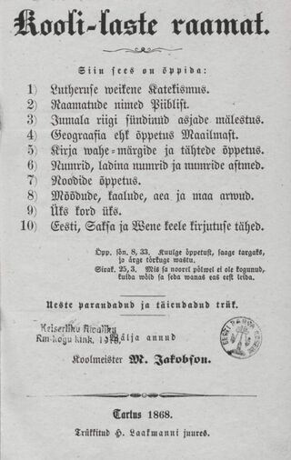 Märt Jakobsoni Koli-Laste ramat. I jaggo. Tartu, 1868. [1]