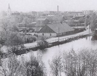 1978 suvelõpu üleujutustest: Veskijärve tammi murdis suurte vihmadega läbi, lätlased panid oma paisule autokraana ja tõstsid väravad välja… Ramsi sillalt pani linnaliini buss viimasena üle kui vett oli tee peal ca 30 cm. Pootshaakidega veevärgimehed said mõne varjalaua kätte aga nii ta läks. Vesi lahmas üle tee veskimaja keldriaknast sisse ja valvuritädi käis tabalukk pihus: mul pole täna midagi valvata. Õue peal seisnud TA-6 kauplusbussidest voolas vesi vulinal läbi. Foto sündmusest = ajapaik.ee / muis.ee