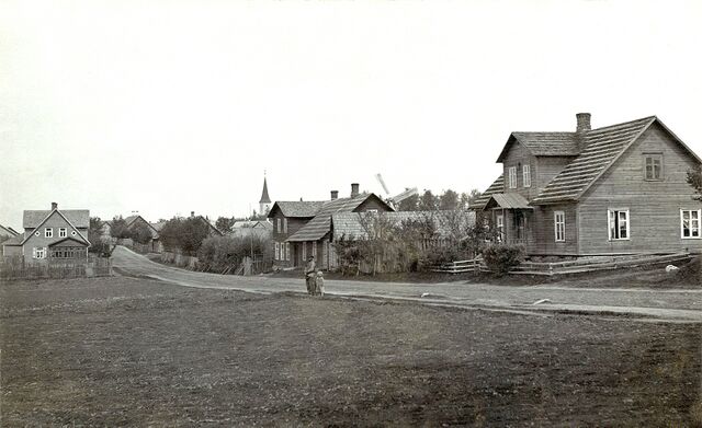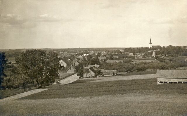- ↑ Suure-Jaani.Tänavavaade, taamal Evangelist Johannesele pühitsetud kirik, majade vahelt paistmas tuulik oma tiibadega.