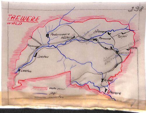 Taevere valla veskite kaart Jõukomitee veskite loendusel 1938-1940
