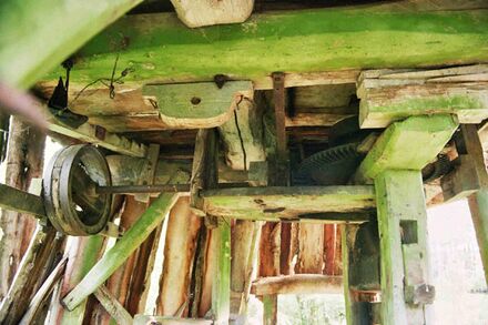 Püstvõll ajab all asetsevat ajamit - oliiviõlipressi või jahvekive - ringi.